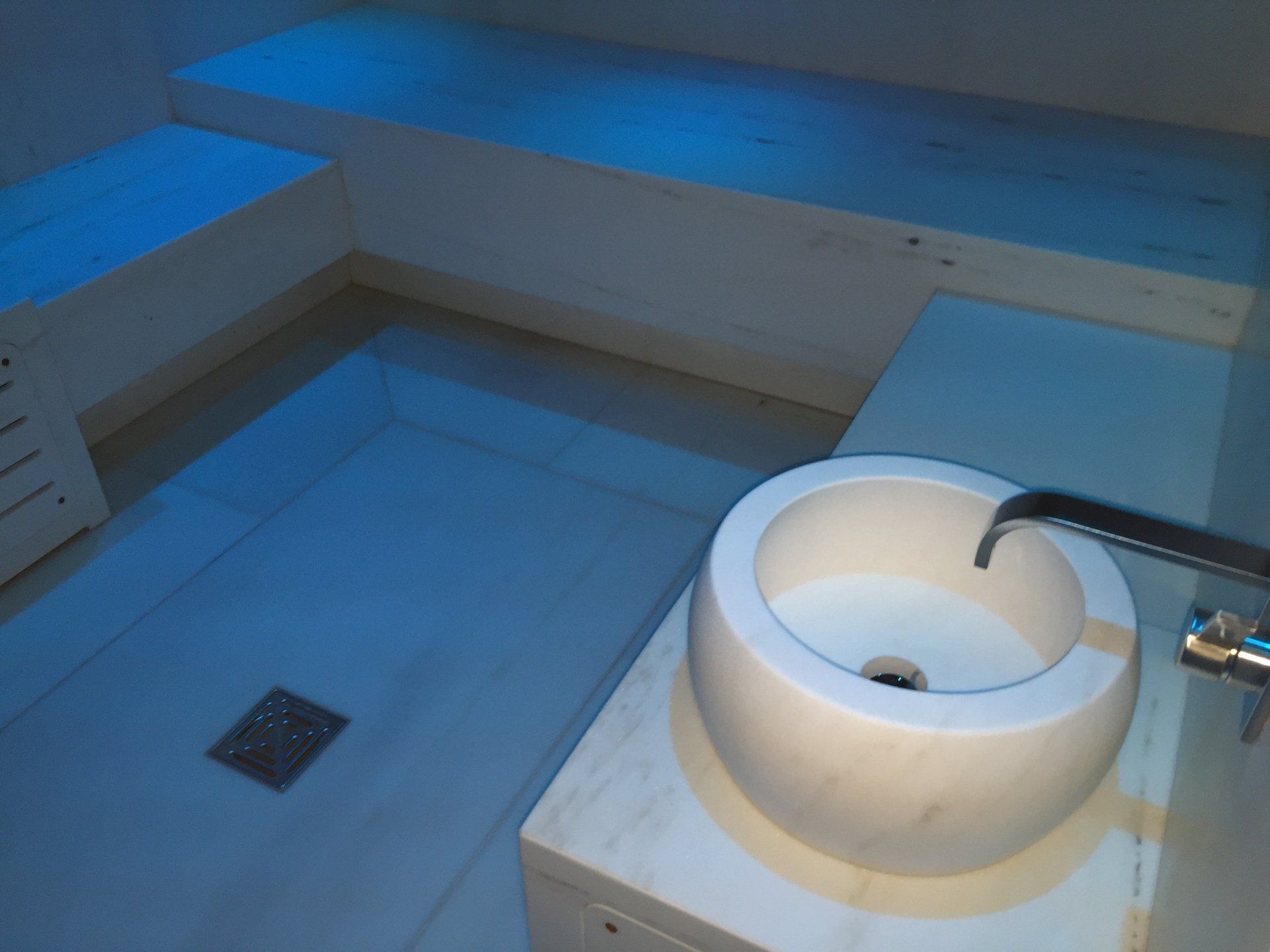 Vima Marmi si occupa della posa di manufatti in marmo per bagni e docce, sia private che all'interno di hotel e strutture pubbliche.